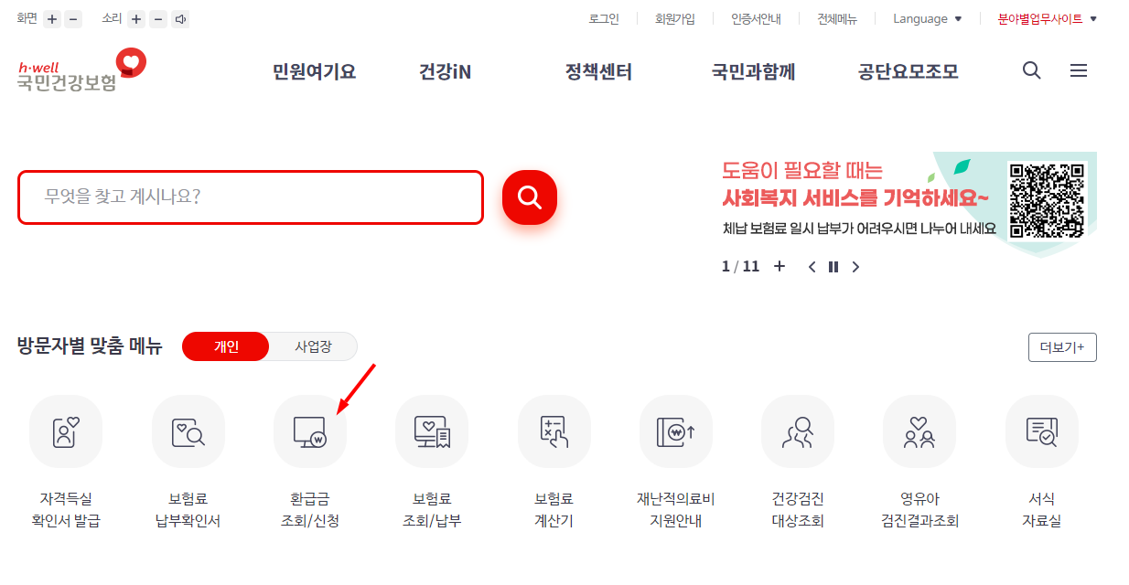 - 건강보험공단 홈페이지 접속