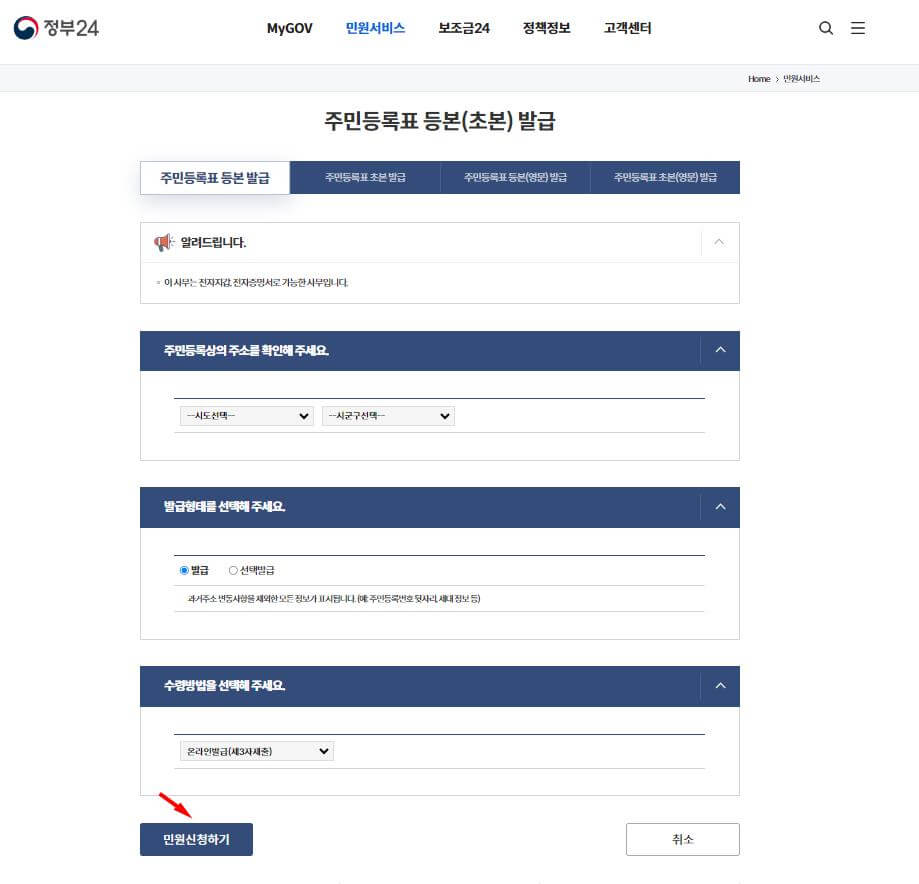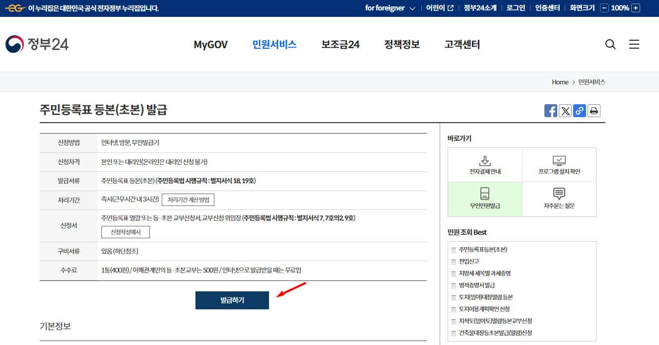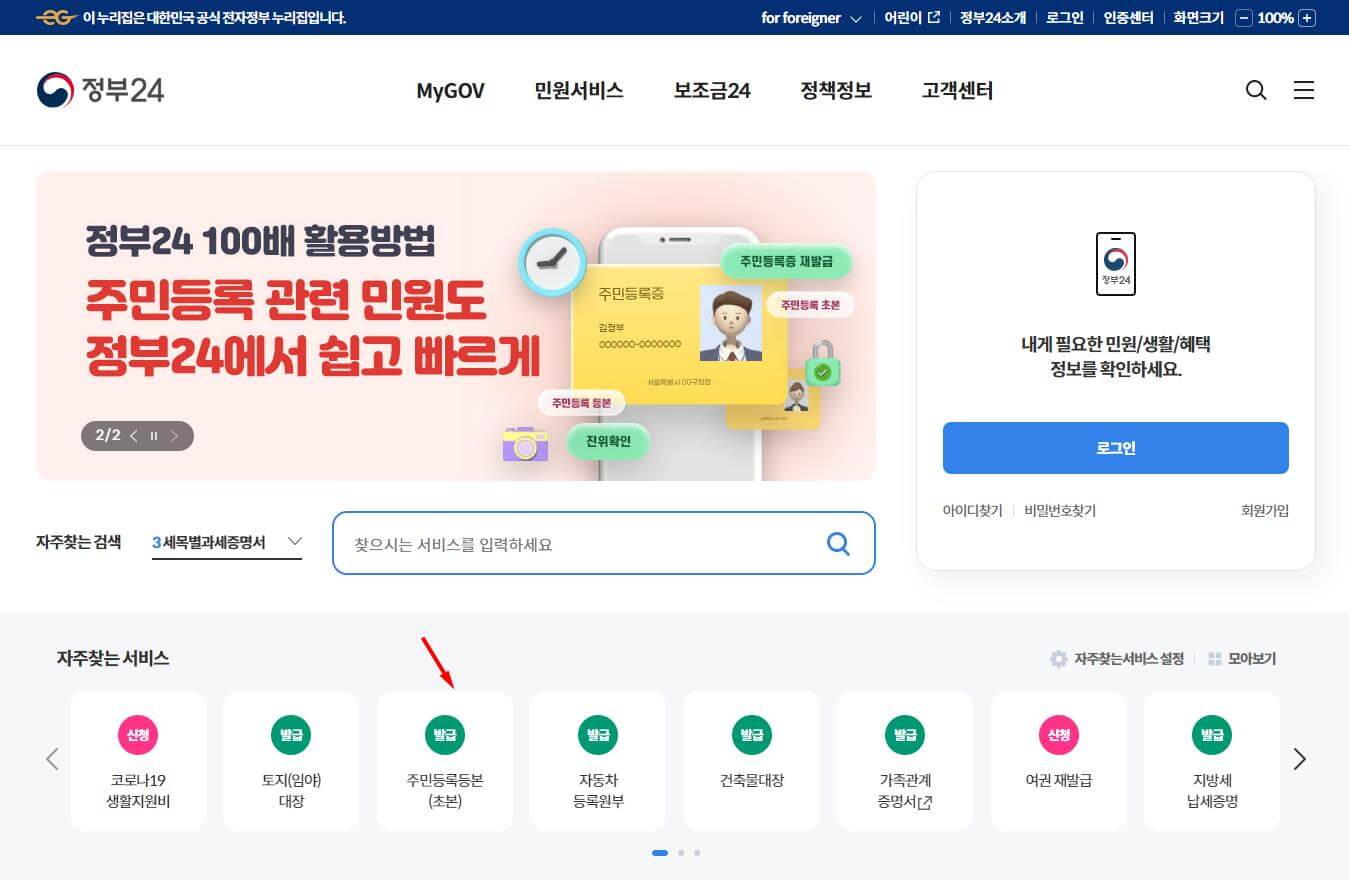 주민등록등본 발급