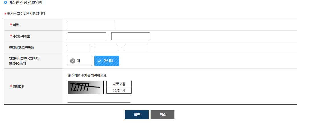 ▶ 비회원 신청정보를 입력하시고, 입력확인의 숫자는 개인마다 다르니 참고 바랍니다.