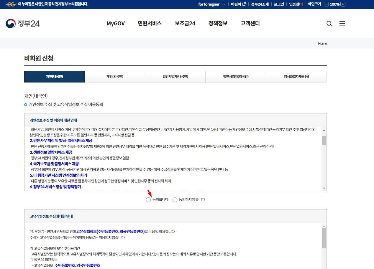 ▶ 동의합니다 2곳 모두 체크를 해주시고 비회원 신청정보를 입력하시면 됩니다.